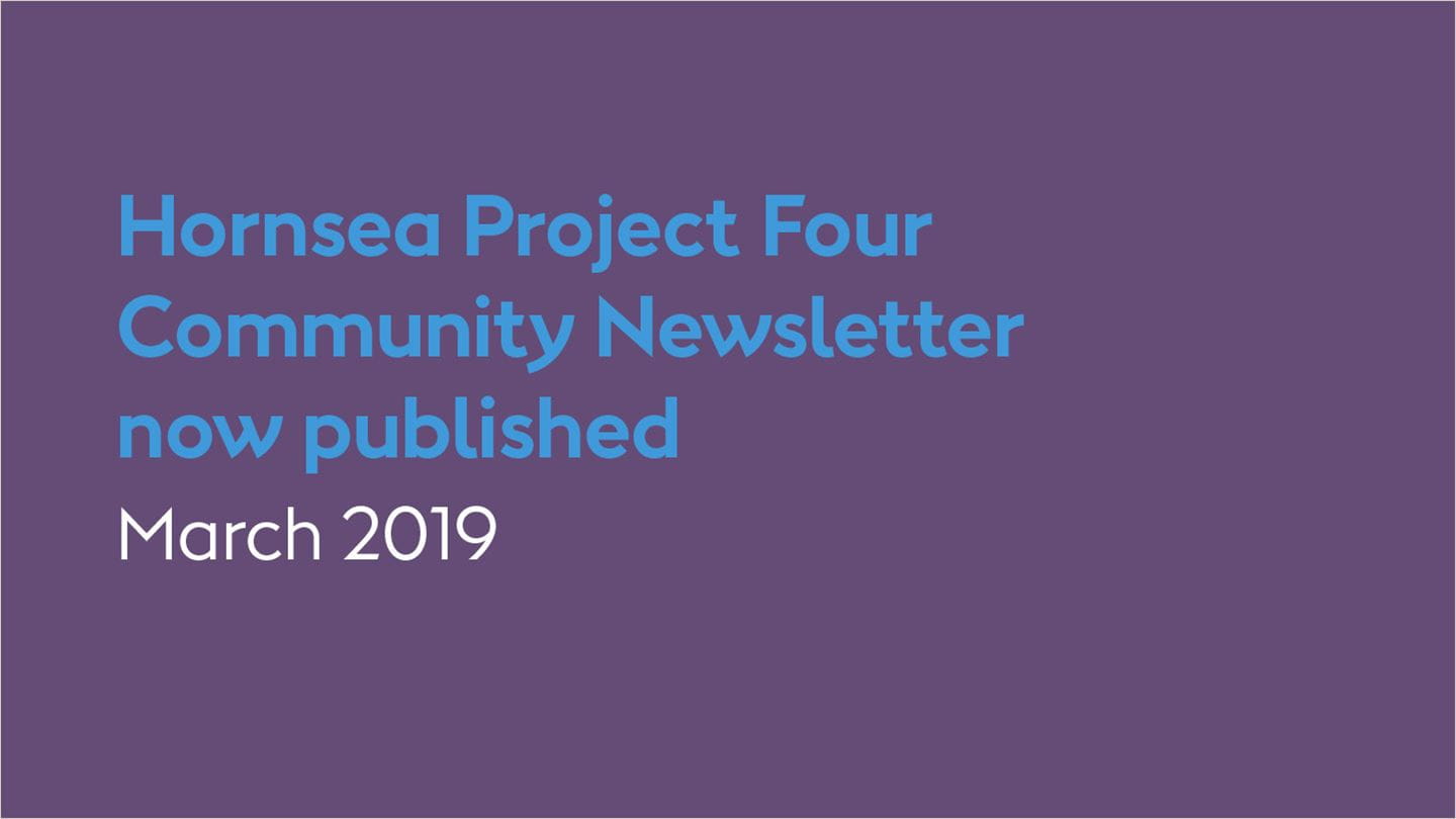 Hornsea Project Four Community Newsletter for March 2019 contains the latest project information, including an update on what we’ve learnt from our local information events in October 2018 and from feedback received since that date.